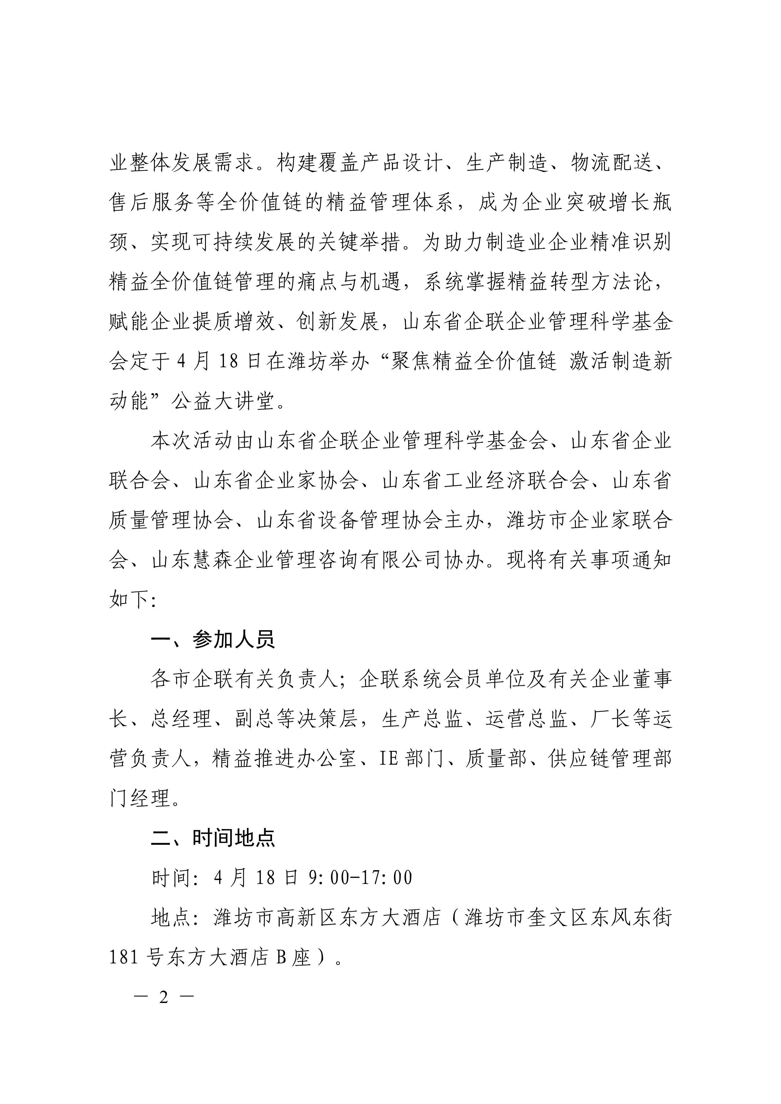 关于举办“聚焦精益全价值链 激活制造新动能”公益大讲堂的通知